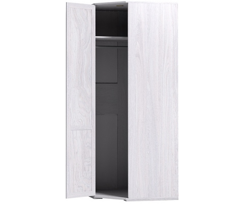 Внутри шкафа расположены 4 полки для белья, стационарная штанга для вешалок и 1 антресольная полка.