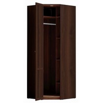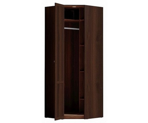 Комплектуется внутренним стеллажом с полками, регулируемыми по высоте, и длинной стационарной штангой для вещей на плечиках.