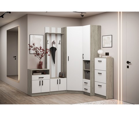 Шкаф угловой Вега (Дуб крафт серый, Белый)