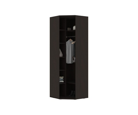 Распашной угловой шкаф с полками и штангой. .
