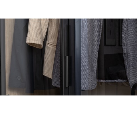 Распашные фасады выполнены из стекла.