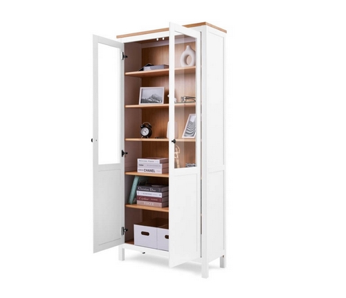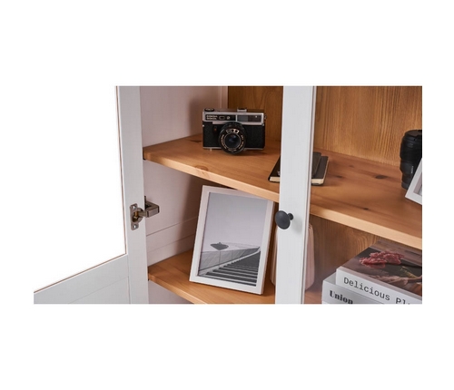 Комбинированные дверцы из массива сосны и закаленного стекла оснащены доводчиком для плавного и бесшумного закрывания.