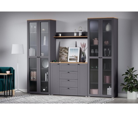 Шкаф-витрина Остин 16.394.02 (серый графит, дуб золотой)