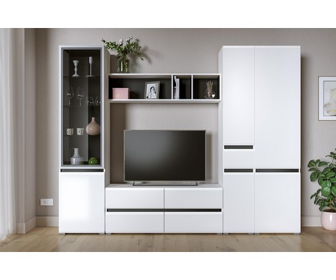 Шкаф-витрина Сидней 13.201 (белый премиум, черный)