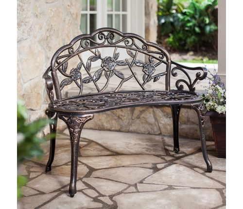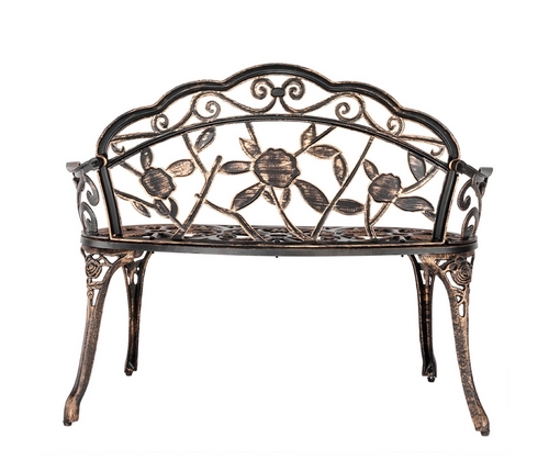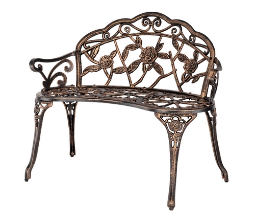 Скамейка садовая из литого алюминия Античная роза (Antique Rose) bronze