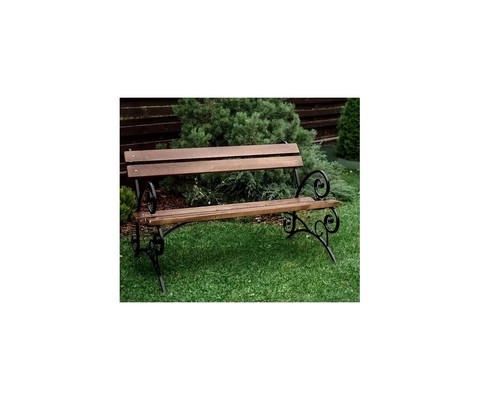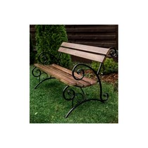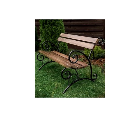 Скамейка декорирована коваными элементами.