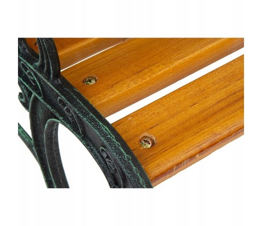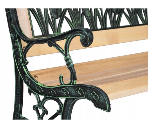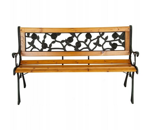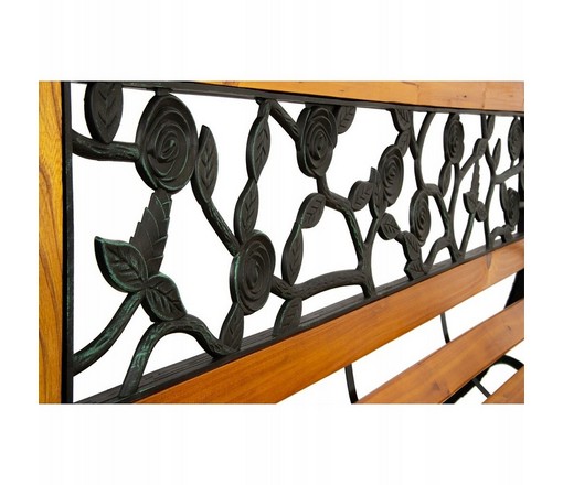 Прочная чугунная рама обеспечивает надежность и устойчивость, а натуральные деревянные ламели сиденья и спинки добавляют теплоты и комфорта.