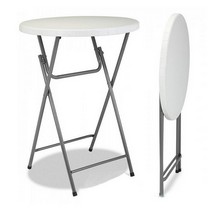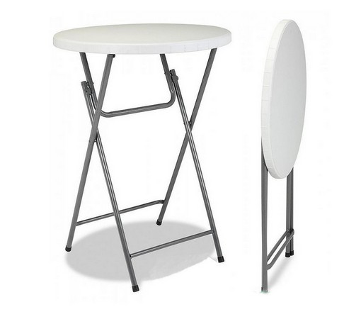 Складной высокий стол с круглой столешницей.