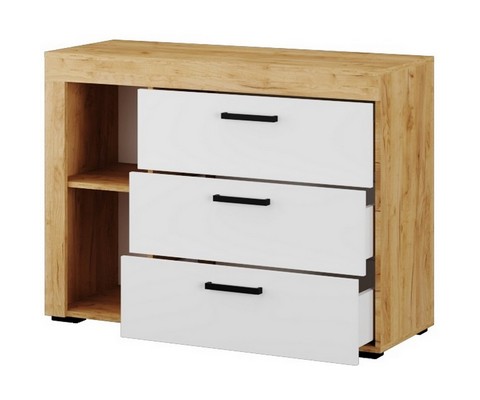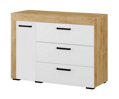 Комод оснащен 3-мя ящиками и отделением с дверцей.