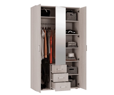 Шкаф трехдверный для одежды Белла состоит из трёх секций, каждая из которых закрывается дверцей.