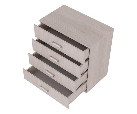 Большой вместительный комод Белла КМ-02 с четырьмя выдвижными ящиками идеально подходит для хранения вещей в сложенном виде.