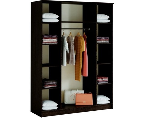 Шкаф содержит полки по бокам и штангу в центральной секции.