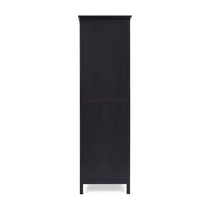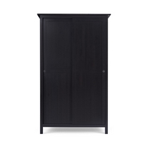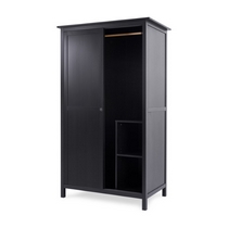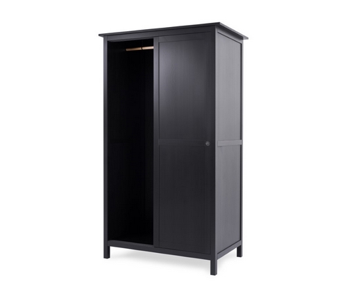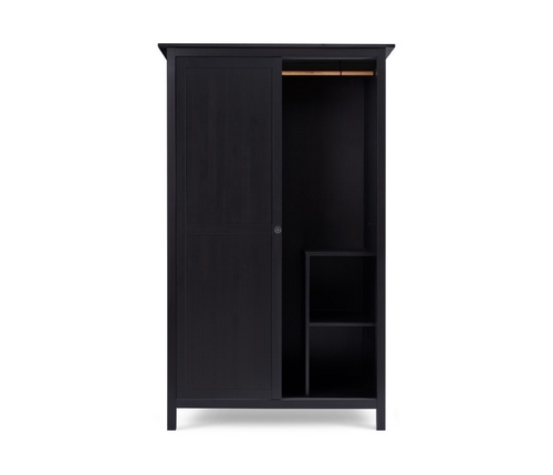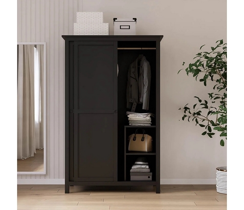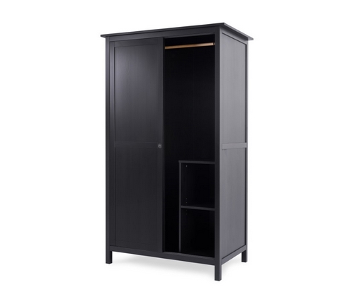 Внутреннее наполнение включает две нижние полки для хранения постельного белья, полотенец или одежды и деревянную штангу по всей ширине шкафа.
