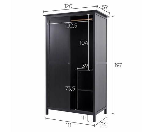 шкаф-купе: ширина - 120, высота - 196,8, глубина - 58,9.