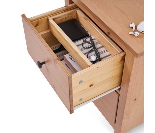 Верхний ящик оснащен съемным деревянным контейнером для удобного хранения мелочей.