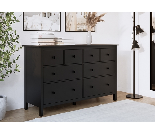 Вместительный комод Кымор с восемью ящиками позволит удобно организовать хранение одежды, белья, документов и других необходимых вещей в спальне.