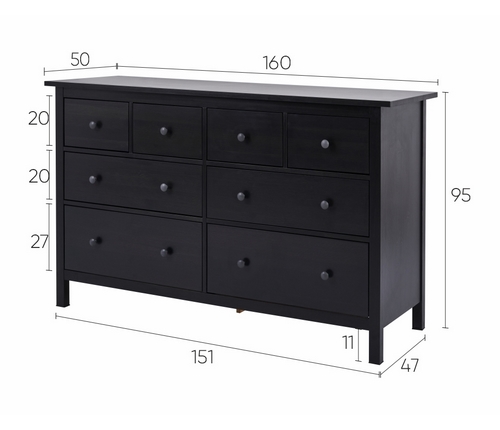 комод 8 ящиков: ширина - 160, высота - 95, глубина - 49,8.
