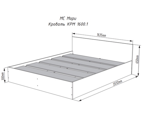 Кровать длина - 203,2 см, высота - 30 см (общая высота - 65 см), ширина - 163,5 см.