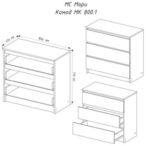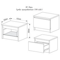 Характеристики: комплектация - двуспальная кровать КРМ 1600.1, комод МК 800.1, прикроватная тумба ТПМ 400.1.