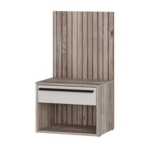 Задняя стенка декорирована фотопечатью, имитирующей вертикальные деревянные рейки.