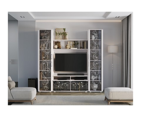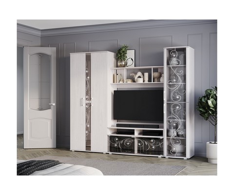 Стеклопенал Флоренция (ясень белый) комплектуется 6-ю полками.
