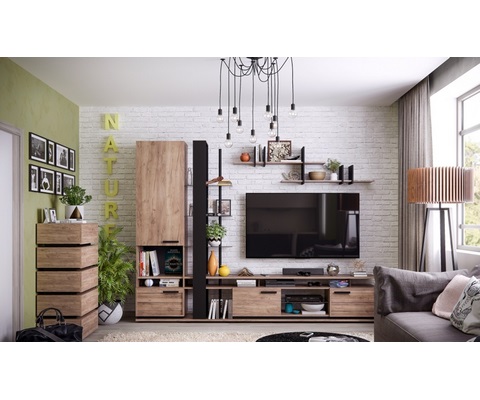 Стеллаж 25 Nature (Натура) дуб табачный craft-чёрный