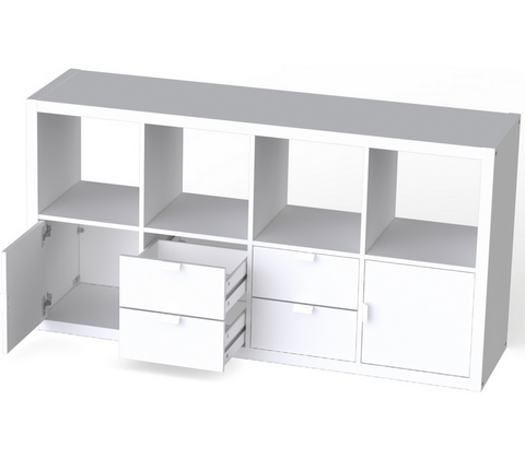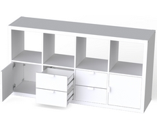 Ящики и дверцы с полунакладными петлями приобретаются отдельно.