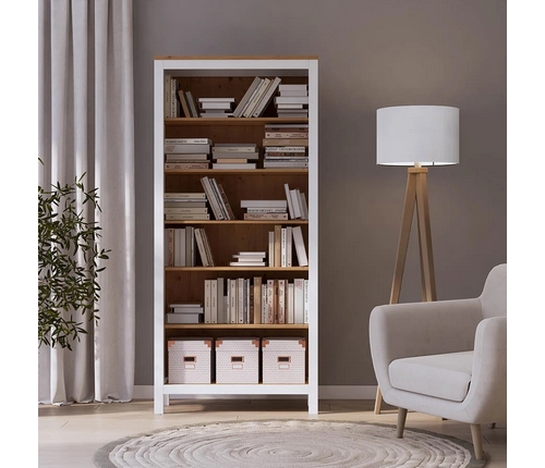 Стеллаж Кымор 90х198х37 (белый, светло-коричневый)