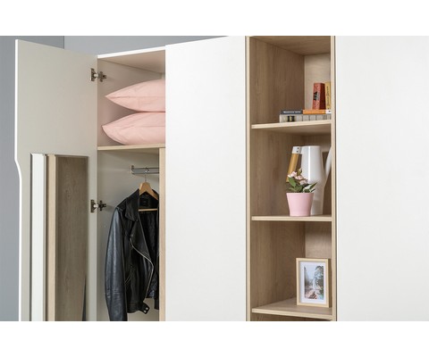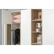 Стеллаж изготовлен из ЛДСП, который отличается высокой износостойкостью и устойчивостью к механическим повреждениям.