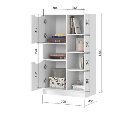 Комбинированный стеллаж Руна СТЛ 02 состоит из открытых и закрытых полок.