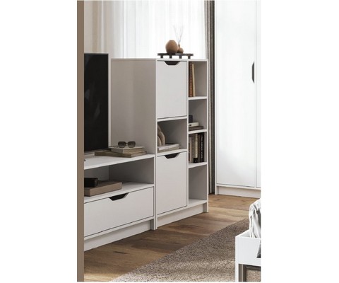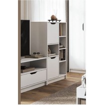 Стеллаж изготовлен из ЛДСП, который отличается высокой износостойкостью и устойчивостью к механическим повреждениям.