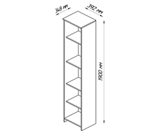 Стеллаж узкий, с пятью полками.