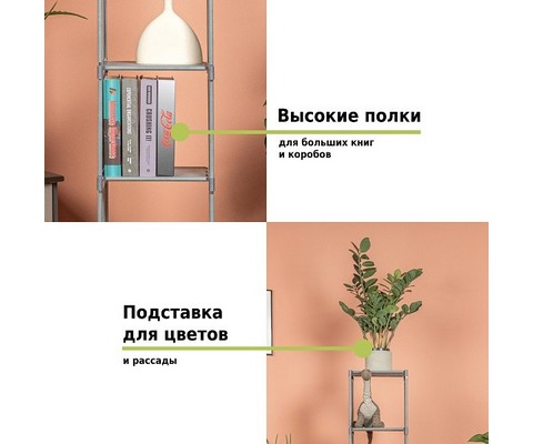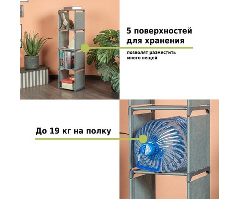 Стеллаж-трансформер для хранения Helex Home W-15 имеет 4 полки.