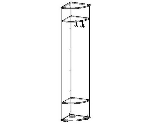 Оснащение углового стеллажа СПУ-4: два сдвоенных крючка, две полки, ниша.