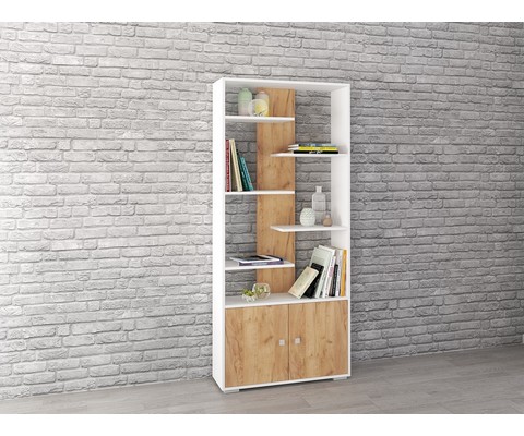 Стеллаж Ромео-4 (белый, дуб крафт золотой)