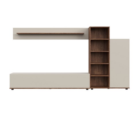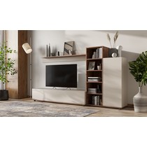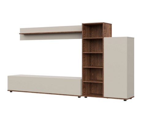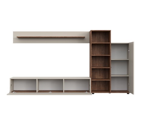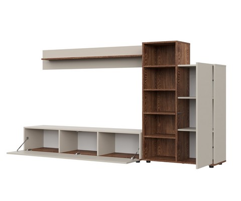 Современный мебельный гарнитур, создающий элегантную и функциональную зону хранения в гостиной.