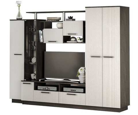 Гостиная «Вега» может стать главным украшением любого современного интерьера, подчеркнув естественность и ненавязчивость оформления благодаря цветовым сочетаниям. Важнейшей особенностью гостиной «Вега» является высокая функциональность. Особую грациозность модели придает стеклянный фасад гостиной, внутри которого 3 стеклянные полки .