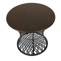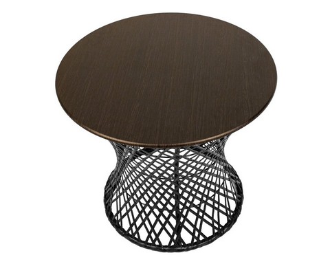 Плетеная фактура придает столу природное очарование и визуальную легкость.