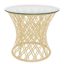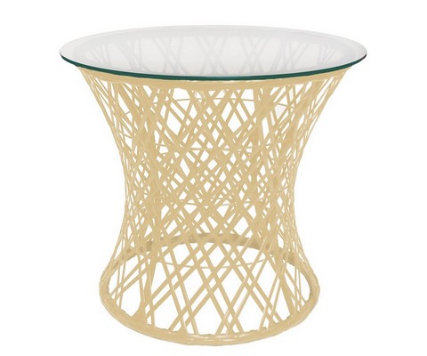 Плетеная фактура придает столу природное очарование и визуальную легкость.