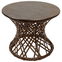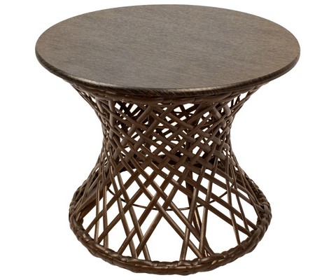 Плетеная фактура придает столу природное очарование и визуальную легкость.