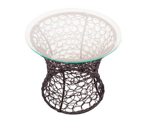Плетеная фактура придает столу природное очарование и визуальную легкость.