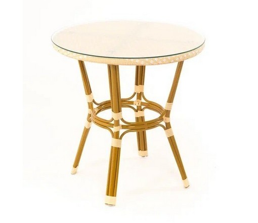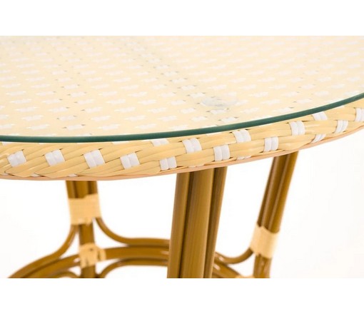 Стол CS-02-01 из техноротанга на железном каркасе подойдет для лоджии, беседки, террасы или летнего кафе.
