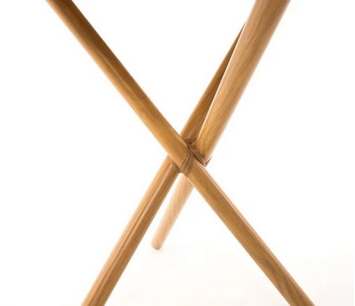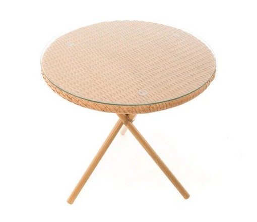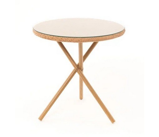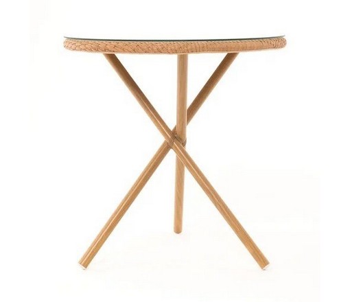 Материал: полиэтилен (оплетка), железная труба (основа), стекло (столешница).