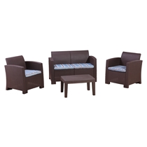 Изготовлен из пластика с имитацией плетения под ротанг.