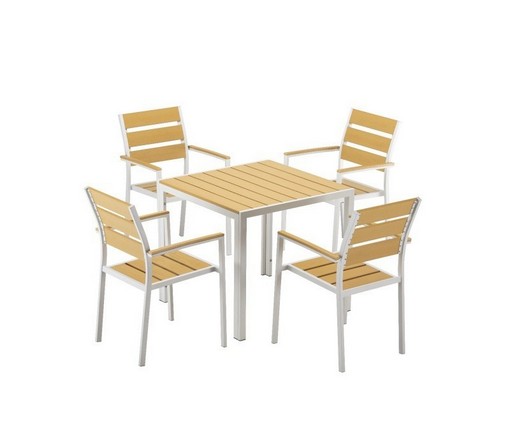 Стол DS-07-01 квадратной формы выполнен из террасной доски на алюминиевом каркасе.