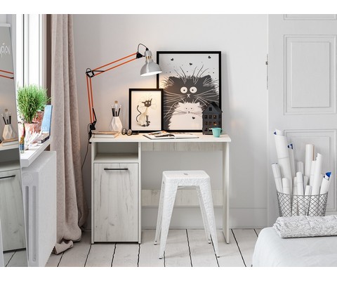 Компьютерный стол Фронда-10 снабжена тумбой с открытой нишей и парой вместительных полок.