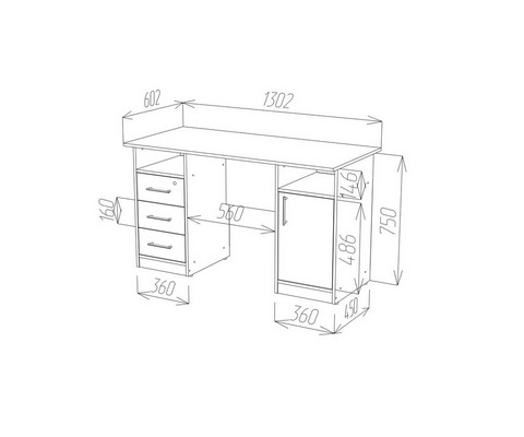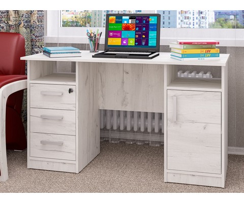 Прямой компьютерный стол Фронда-4, двухтумбовый, с тремя вместительными выдвижными ящиками (шариковые направляющие), обеспечивающих полное выдвижение.