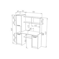 Комплектация компьютерного стола Фронда-6: три глухих распашных шкафчика по две вместительные ниши в каждом, пять полок, верхняя часть надстройки образует дополнительную нишу.