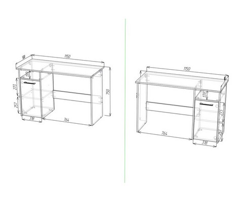 Ящики стола плавного хода, передвигаются на шариковых направляющих и имеют полное выдвижение.