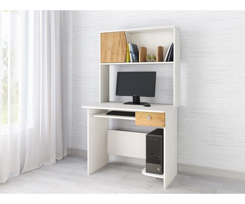 Может ли рабочее место дома быть функциональным, но при этом компактным? Конечно, если это компьютерный стол Грета-4. Ширина модуля всего 90 см, а это значит, что Вы сможете установить его даже в малогабаритной комнате. Стол оснащен выдвижной панелью для клавиатуры и ящиком на роликовых направляющих, полкой под процессор, а также надстройкой с отрытой и закрытой нишами. Опоры стола имеют пластиковые подпятники, предохраняющие напольное покрытие от деформации.